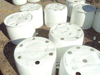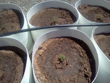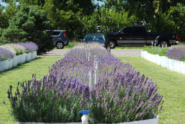 We grow lavender in the most unique way, above ground in barrels. We didn't like the idea of having to get down on our knees for every plant so Bryan had a thought...raise the plants. Our barrels are 55 gallon food grade drums cut in half. We filled those barrels with some great dirt and put our baby lavender plants in there. Now we can't get those plants to slow down.